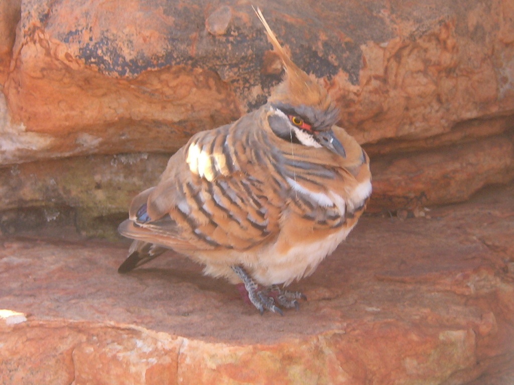 | le bouclier de thuringe est un rouge, ceux avec les aigrettes sont des colombes lophotes, il y en a deux espèces, celles a dominante brun sont des colombes terrestres si je ne me trompe pas. Les grises non