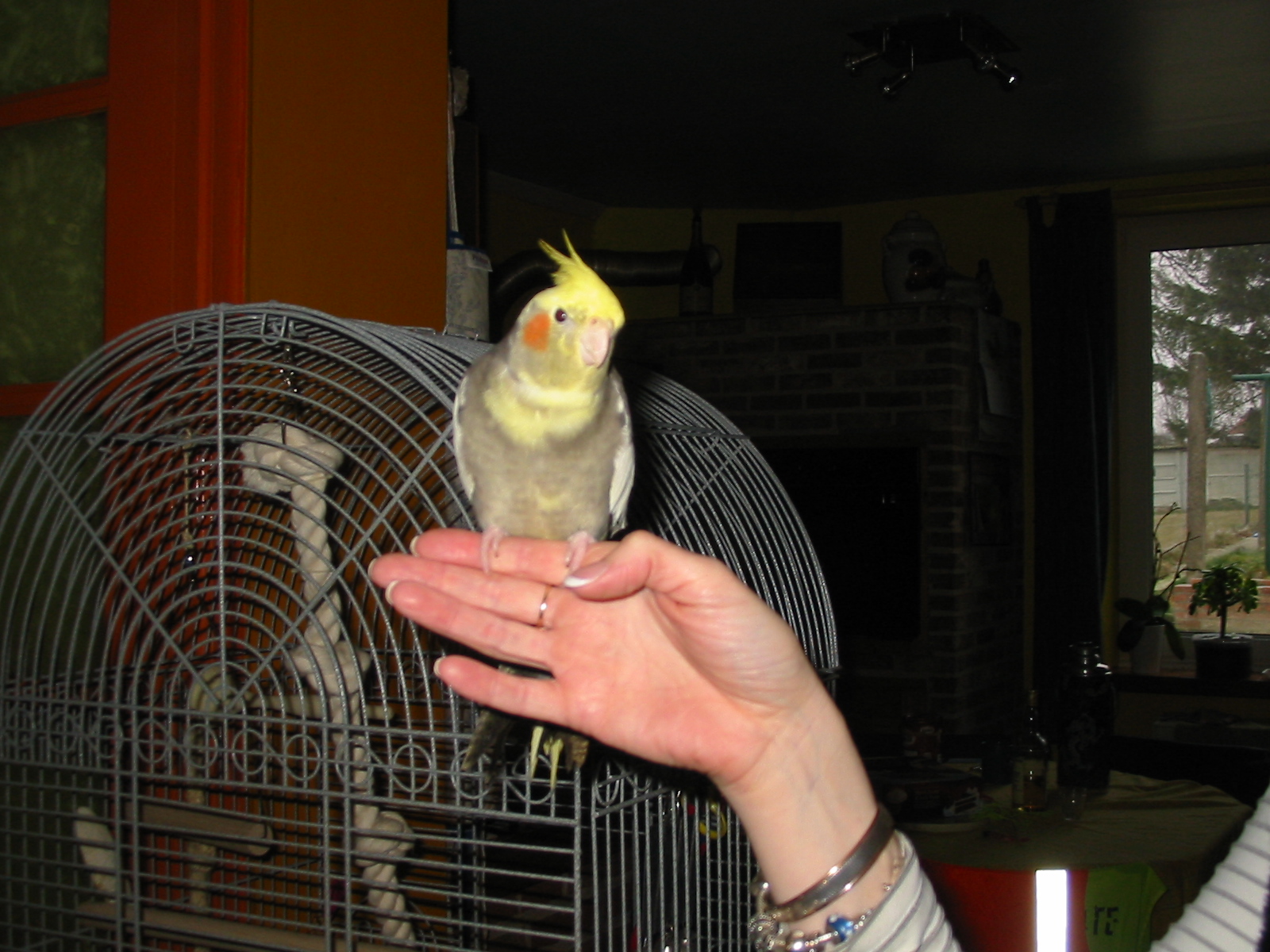 | Je vous présente mon calopsite. Il n'a que quelques mois. Il a aussi plusieur prénoms, son vrai prénom est Kef, son surnom est Coco, et moi je l'appelle le Piaf xD