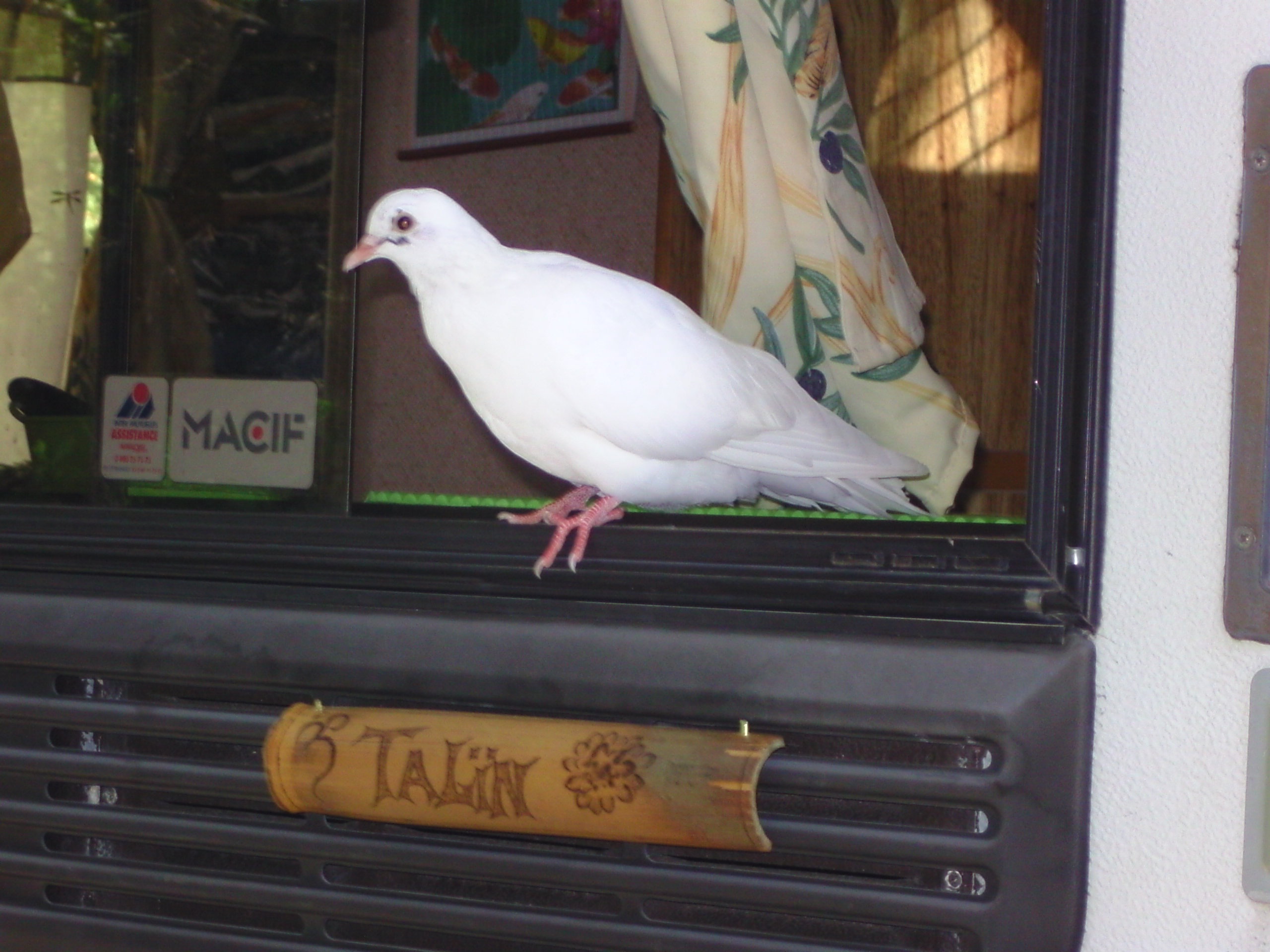 -------------------- J'ai le privilége de vous présenter ma Colombe Wifi. Elle vit en totale liberté , mais elle choisie de vivre avec moi en appartement. Totalement apprivoisé, je suis a ça merci !! lol |