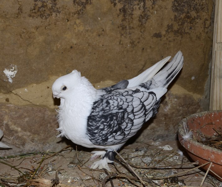 | C'est ce que j'ai pensé en premier : le père n'est pas le père véritable. Mais en fait je n'ai aucun cravaté mâle autre que cravaté oriental bleu écaillé, et comme la queue de ce jeune est partiellement colorée ainsi que les pattes en partie emplumées, c'est bien un 'mix' entre papa et maman.... Alors on l'appelle comment cette couleur? C'est très joli en tout cas, je suis en grande pénurie de mâle pour mes cravatés allemands anciens et si c'en est un je le mettrais bien sur une de me femelles pour voir. Le couple couve à nouveau on verra ce que ça donnera pour les couleurs. Je n'aime pas faire des croisements mais je n'ai plus de mâle cravaté allemand ancien et le mâle cravaté oriental est malheureusement seul.... Ils se sont pas trop mal trouvés au final (par rapport à par exemple 2 autres couples pourris que j'ai : Lahore-Figurita et QPI-Mondain LOL).
