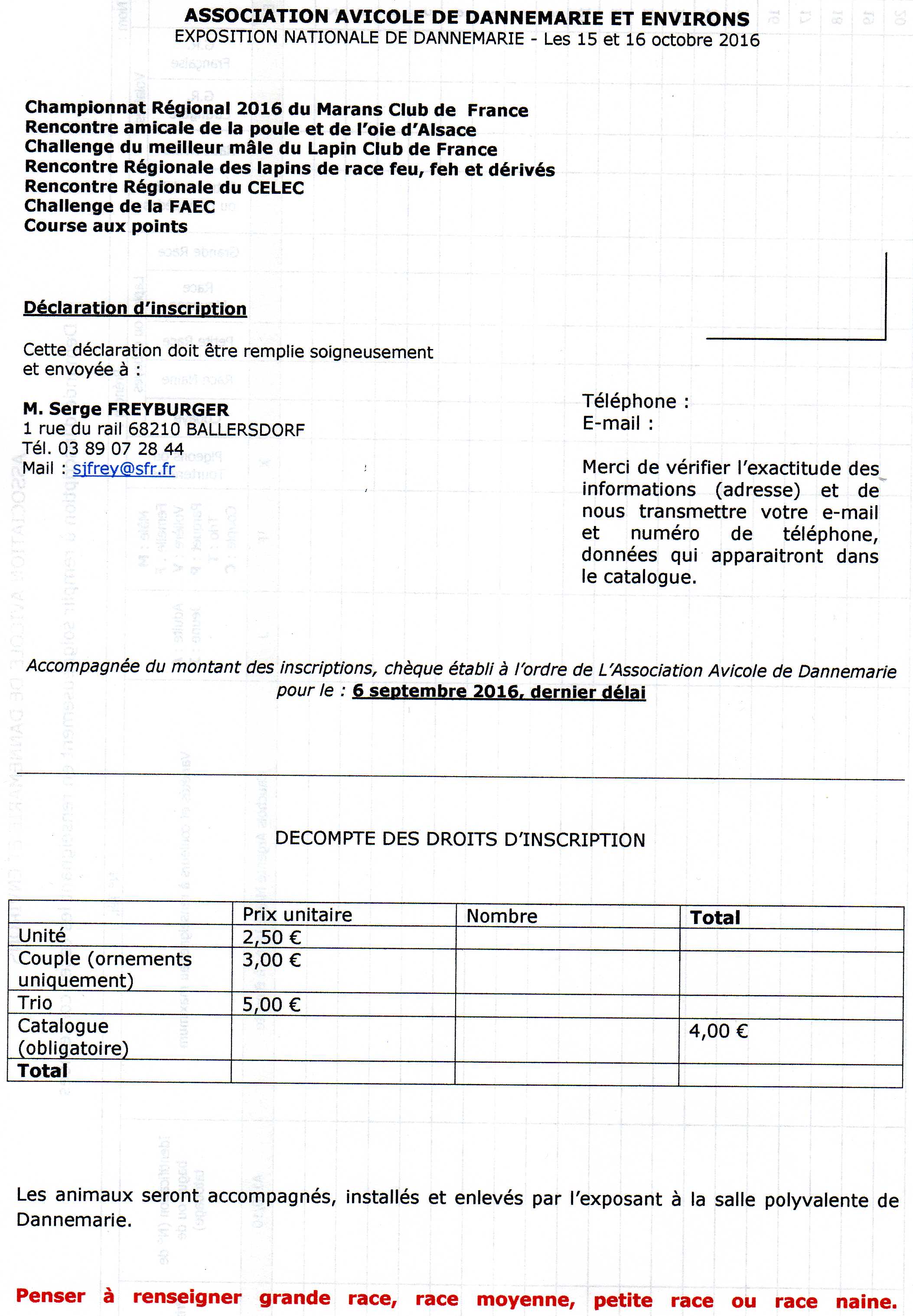 dernier délais 22/09/2016pour s'inscrire a l'exposition nationale avicole de Dannemarie 68210 du 15 et 16 octobre 2016