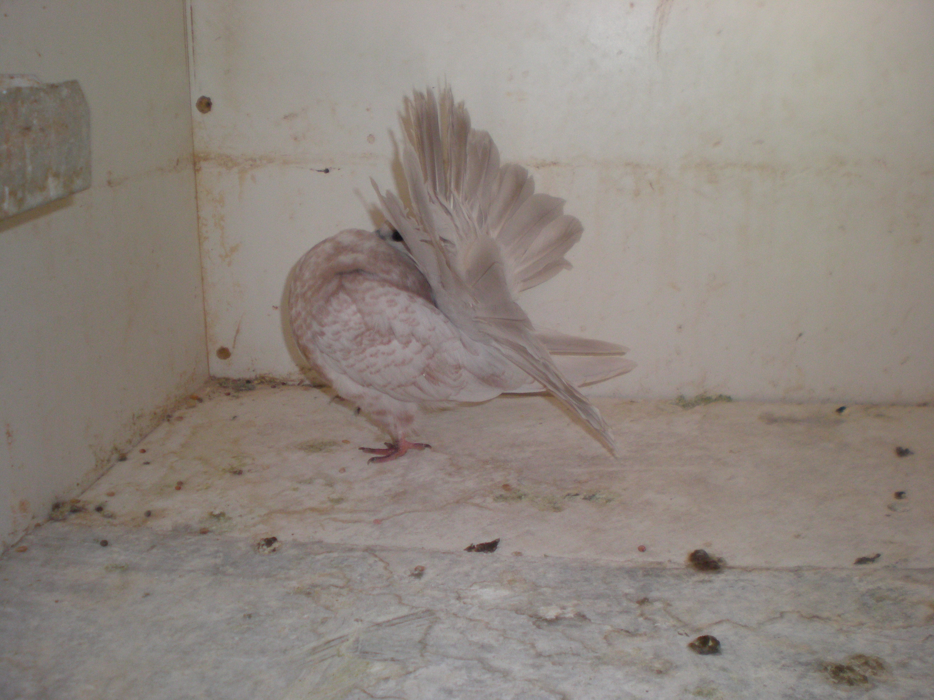 | Les deux premières photos me tracassent. A première vue, de suite, j'ai pensé "andalou homozygote". Mais la tête ne semble pas plus foncée que le corps - même pour un jeune - et alors là je doute. Un jeune "rouge cendré spread"? Peut-être bien! .... Mais a t-il le croupion blanc ou crême ? Bien jeune à mon avis pour se prononcer sans hésitation. J'ai présenté durant plusieurs années des mondains "rouge cendré spread" à Limoges, ce qui à l'époque avait suscité un article de Madame Franqueville sur le bulletin du club, un juge de l'époque ayant traité mes oiseaux de "vulgaires gris-souris". Je vous mets ci dessous une photo d'un jeune andalou homozygote (tout juste 1 mois), puis du même sujet une fois adulte. http://upload.alloforum.com/10253/FHM9I0YH http://upload.alloforum.com/10253/HLT4WC0K