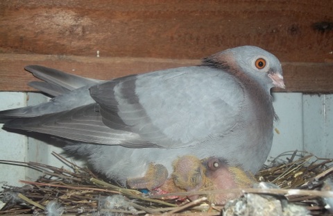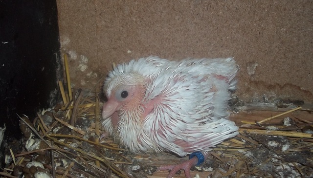 je viens de baguer 2 pigeons de vol catalan ( les parents sont noir et 2 ans qu'ils sont accouplés , donc déja pas mal de jeunes ) , et bien 1 petit est noir et l'autre bleu barré c'est la première fois en 3 ans , depuis que j'ai des vol catalan noir |