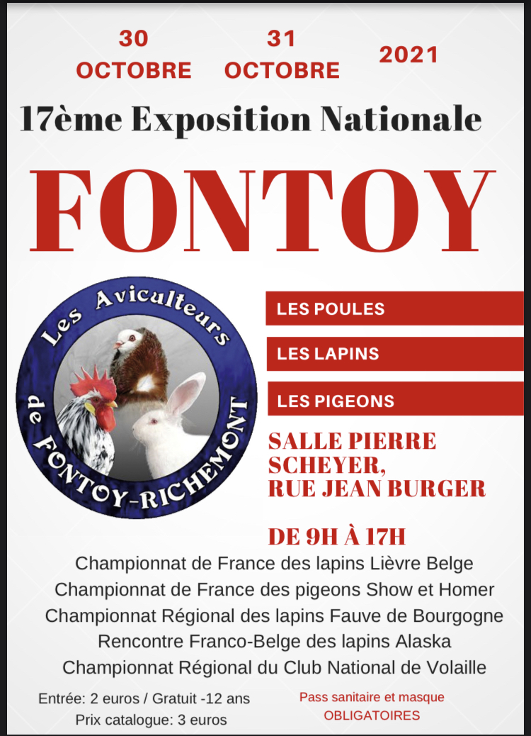 Championnat de France du lièvre belge Championnat de France des show et homer Championnat régional grand est des fauves de bourgogne Rencontre franco belge de l’alaska Championnat regional du club national de volailles