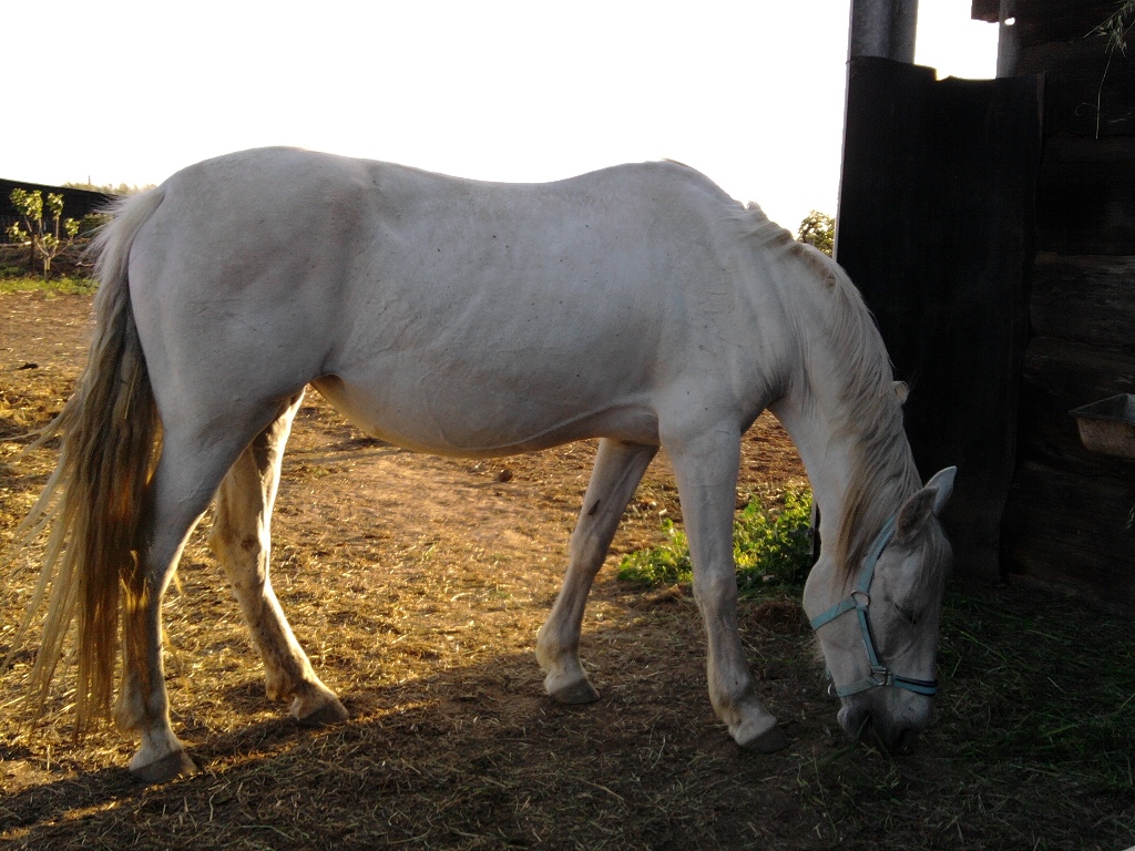 | | en plus c'est une jument qui n'a jamais pouliner,mais dans sa "promenade à cheval" elle n'a pas du chômer ni etre trop bien traiter car a son arrivée,elle était maigre à faire peur !!!!!avec des problémes récurent d'emphyséme pulmonaire allergique !!on traite,ça dure une semaine et ça passe !!!!!les crises ont d'ailleur diminuées nettement depuis que nous sommes à la montagne ,en plaine au moment de la pollinisation des cyprés c'était l'horreur !!!et la propriété en était entourée !!!!mais c'est une dure à cuire,peut etre son 3/4 de sang Camargue !!!!! |