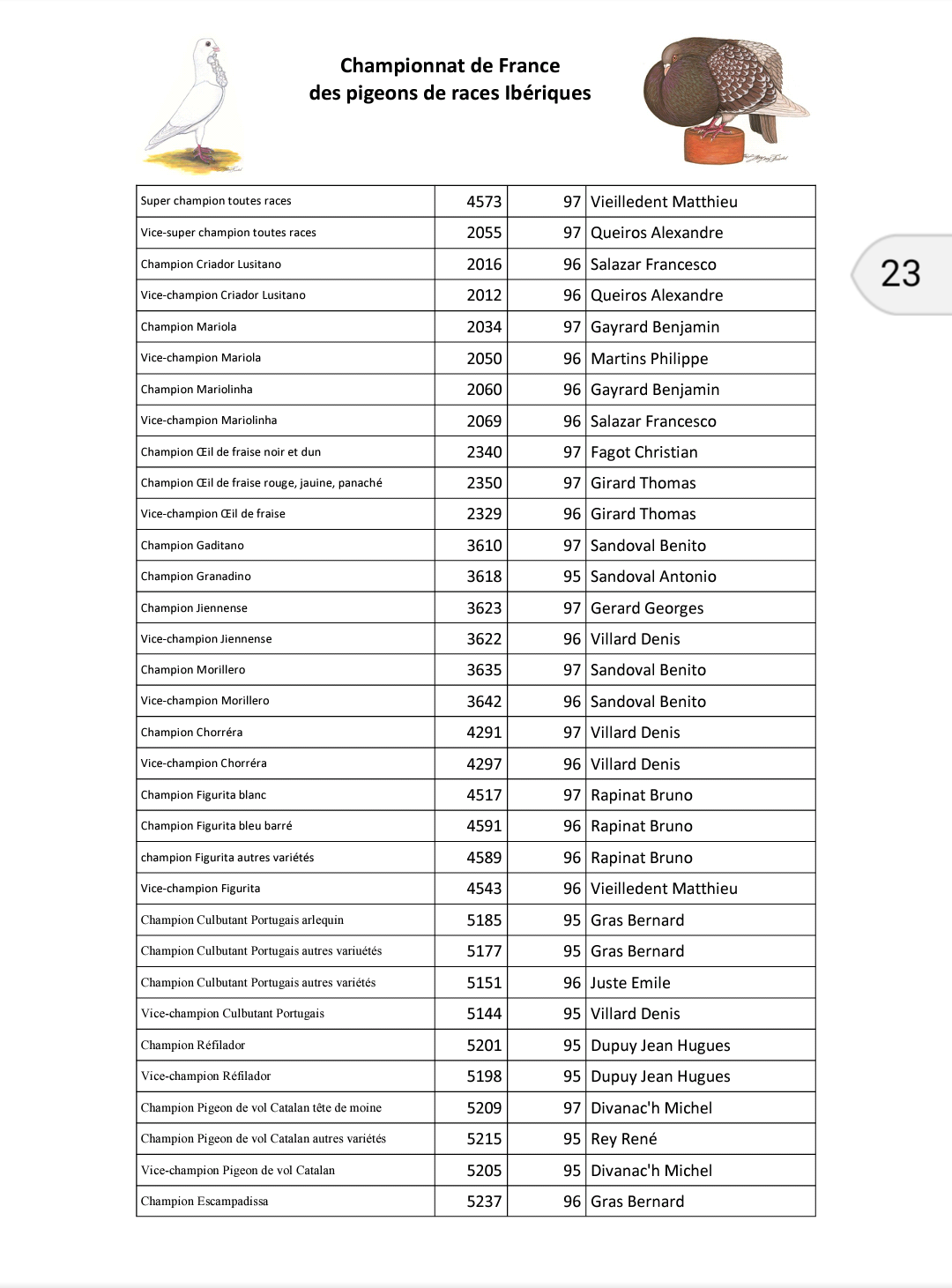 | Super j'ai pu retrouver les copains,Robot,Patrick,Nono,Budapest,Lio,Arnaud(38),Fréddie,Patrick Rivat(notre vert préféré)j'ai aperçu Benjamin et d'autres.De beaux pigeons,ne soyons pas "tatillons" une belle organisation. En ce qui concerne les Ibériques une belle présentation avec pas mal de sujets exceptionnels ,plusieurs 97 (je pense qu'on en aurait mérité plus mais nous n'avons pas encore la renommée du Romain ou autres races)une bague en or avec des Figurita un "champion SNC" avec un Chorréra.et des soirées trés trés sympas . Bon je reviens avec une lourde mission.....organiser à Laragne-Montéglin les 3/4 novembre 2018:le championnat de France et la coupe de France du club Français des pigeons d'origine Italienne,allez on sera prêt et on fera le maximum pour vous bien accueillir