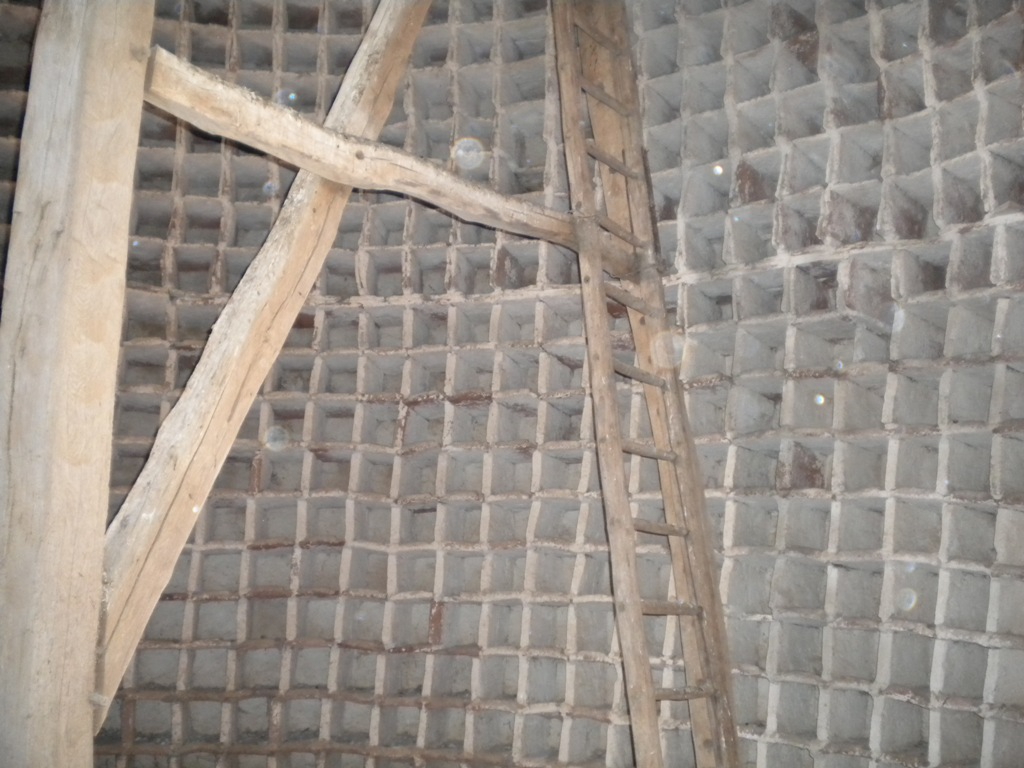| la charpente a bien été restaurée ce sont meme les ouvriers qui effectuaient cette restauration qui on détruit les cases qui manquent pour l"échelle pas de soucis elle est solide je suit souvent obligée de grimper tout en haut pour attraper les jeunes parce que contrairement a ce que certain pensent les texans volent tres bien et ces couillons me font des petits tout en haut juste sous les tuiles sur le rebord au dessus des cases j'ai du pas plus tard qu'hier attraper mes cinq couples les enfermer chacun dans une case de clapier le temps de tendre un filet sous les premières grosses poutres de manière a ne plus etre obligée de grimper jusque la haut parce que meme si l'échelle est solide je ne suis tout de meme pas rassurée donc demain apres le boulot opération filet dans le pigeonnier je pense faire cela sur quelques jours