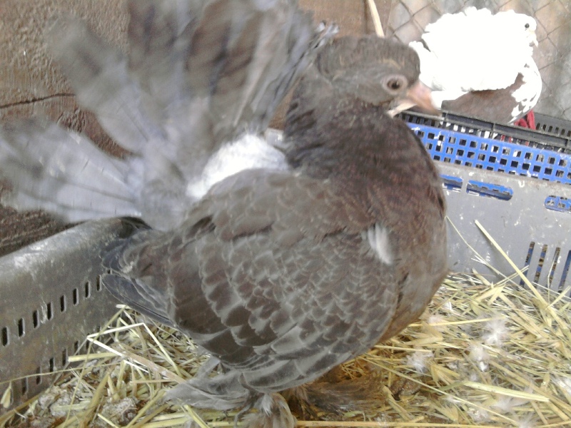 | Axel c'est pas spread lavande....... le spread c'est le gène qui étend la couleur de la barre caudale sur tout le corps, c'est un des gènes du lavande, ajouté au bleu et au milky....c'est ce qu'Eddy a voulu expliquer par contre, je pensais que c'était du rouge cendré et pas du bleu qui rentrait dans la composition du lavande .......mais ça dépend peut-être de la race car il arrive souvent que les dénominations changent avec la race du pigeon