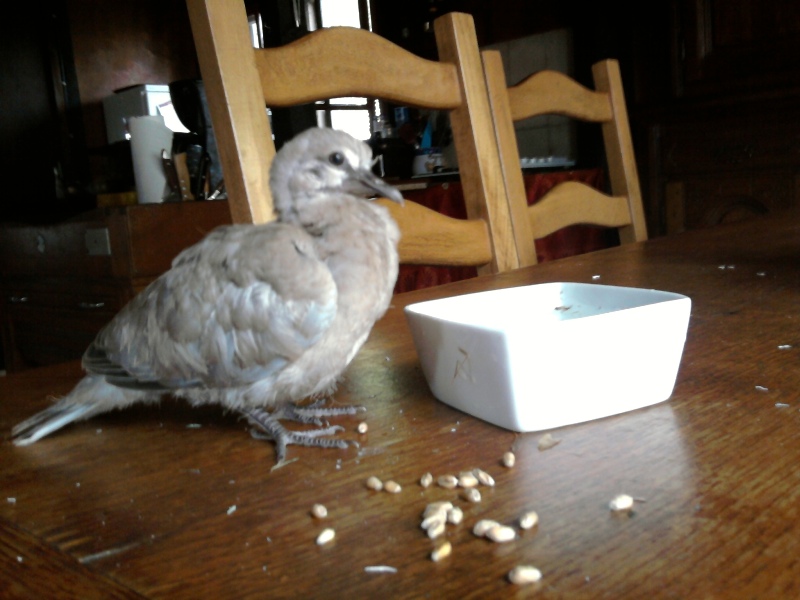 | ma tante ma passer une petite tourterelle qui etait au milieu de la route,elle a fahit l'ecraser .au debut je la nourrissais a la bouche,maintenant elle se nourrit toute seule.en une journée,elle est apprivoisé .