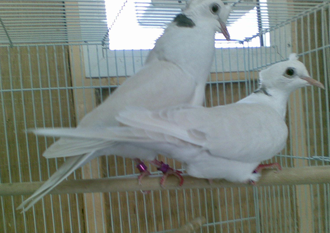 | :hello la premiére il me semble que c'est une colombe de Chine ( ou colombe tigrine ) . j'en ai élevé il y a 10 ans . repro assez facile ,territoriale ,assez grosse en taille ,éléve bien les jeunes j'ai élevé plusieurs variétés de colombes . |