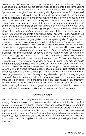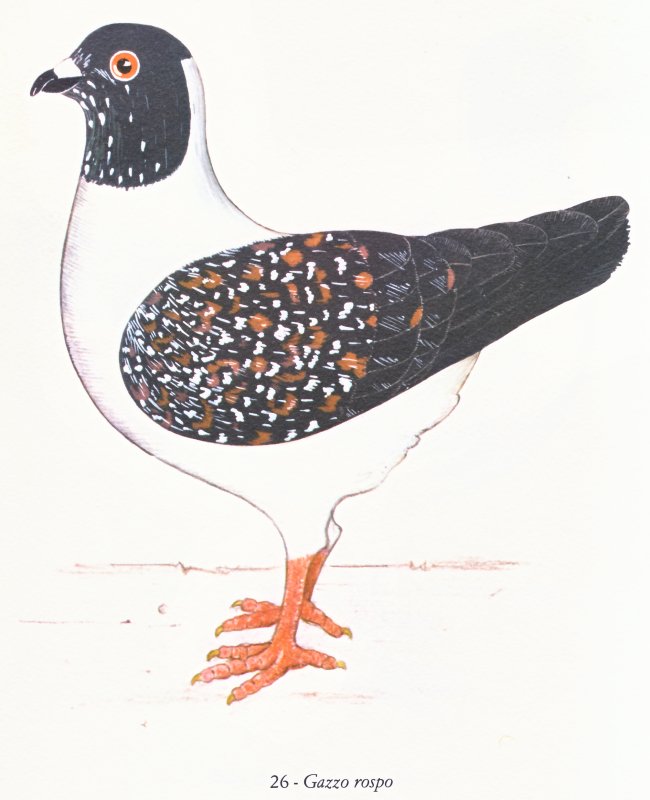 | Le terme "barchetto" est le nom historique de le pigeon triganino. Les couleurs sont la principale caractéristique et occupent la plupart de le standard.