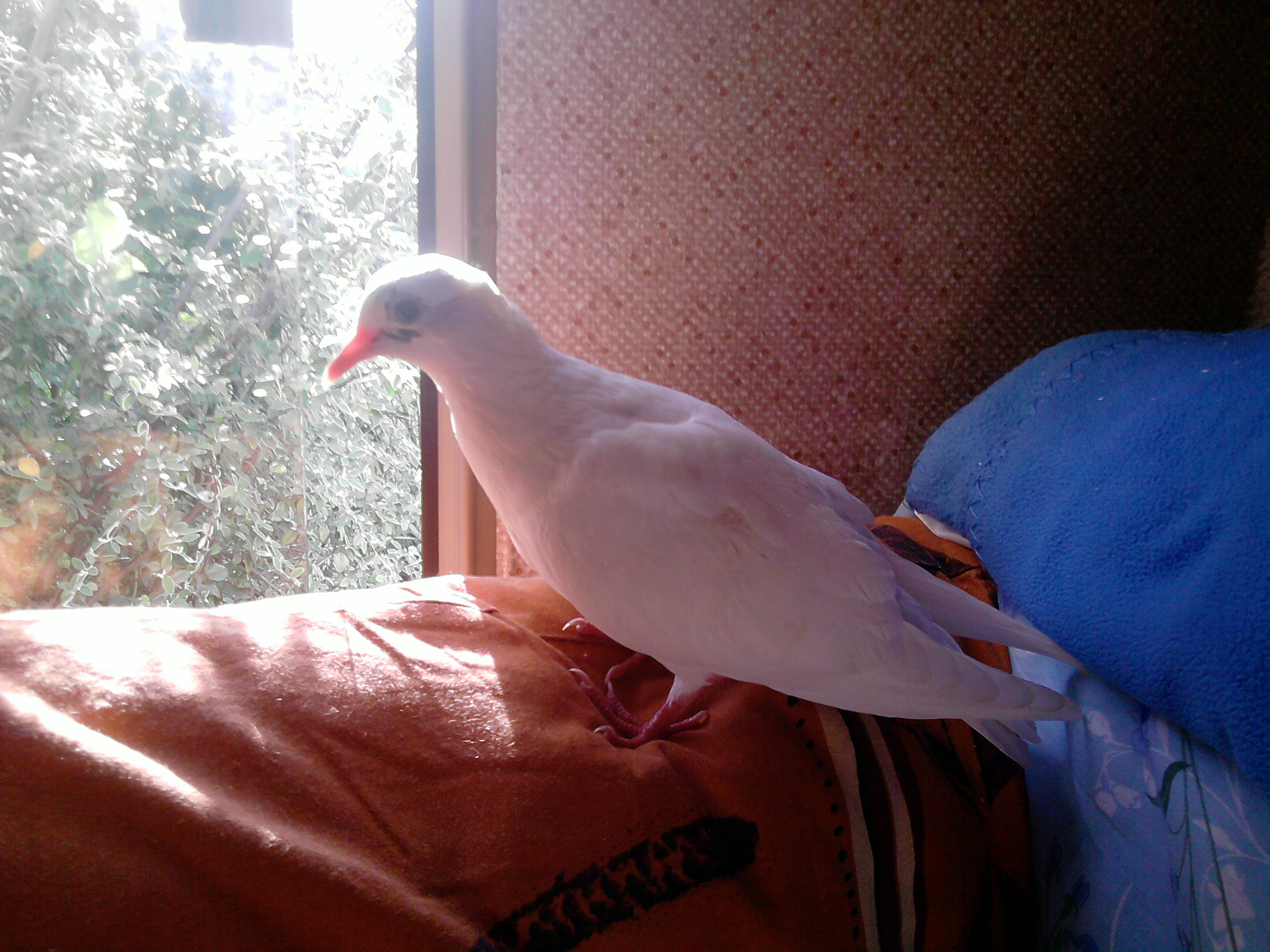 -------------------- J'ai le privilége de vous présenter ma Colombe Wifi. Elle vit en totale liberté , mais elle choisie de vivre avec moi en appartement. Totalement apprivoisé, je suis a ça merci !! lol |